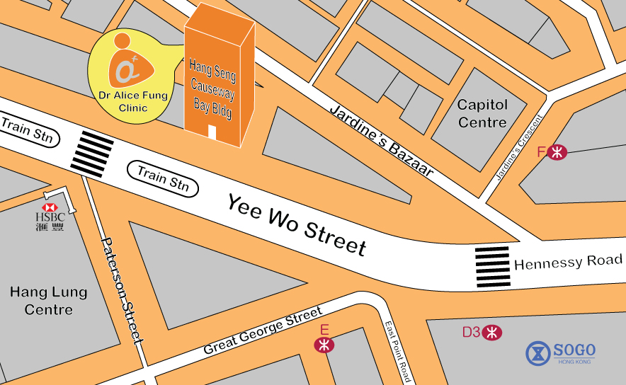 Please be informed Dr. Alice Fung Clinic will be moved to 13/F (whole floor) Hang Seng Causeway Bay Building. No.28-34 Yee Wo Street, Causeway Bay with effect from July 2010.
